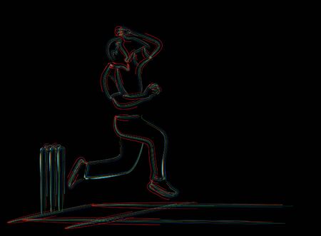 Cricket player in action with bat and ball. Vector illustration.