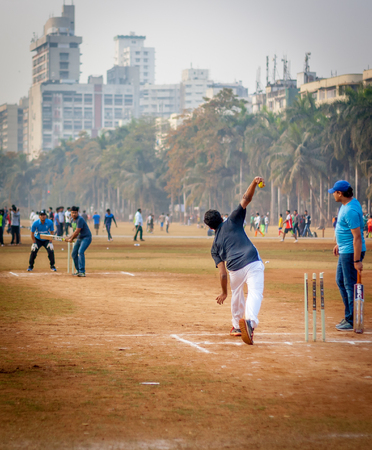 MUMBAI, INDIA - JANUARY 14, 2017 : Men playing cricket with tennis ball at Mumbai grounds