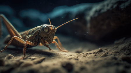 A stunning close-up shot of a cricket on a rocky surface, emphasizing its detailed features and vibrant colors, perfect for nature and macro photography enthusiasts.