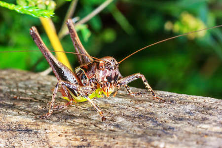 Grasshopper on wooden underground Macro Picture from Bavaria of a little grasshopper on wood in September