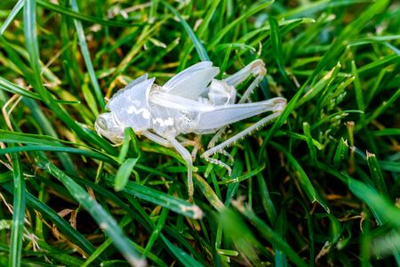 Grasshoppers, meridians, acrids, ticures or tucuras are insects. Some species form huge swarms that can devastate large crops. Dead insect in macro photography.