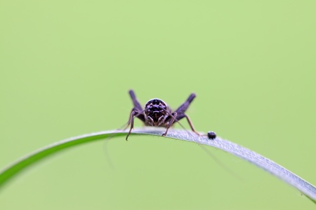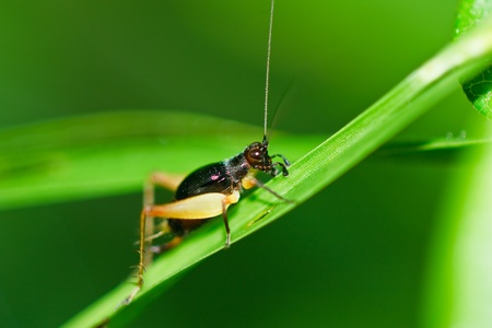 black cricket nymphs on the grass, take photos in the natural wild state, Luannan County, Hebei Province, China.