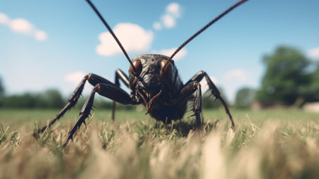 the cricket, meticulously crafted with super realistic 3d rendering, showcases intricate details and textures, perfect for sports enthusiasts, graphic designers, and cricket fans, ideal for use in cricket-themed designs, sports branding, and advertising materials, evoking a sense of excitement and competition. ai generated