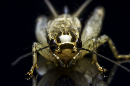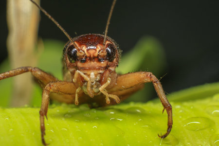 Mole cricket (Gryllotalpa gryllotalpa) in close up low angle view
