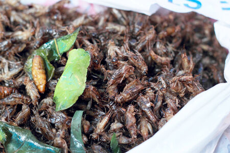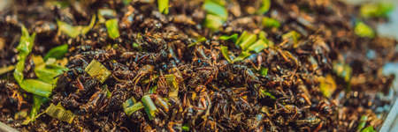 Fried insects, Bugs fried on Street food in thailand BANNER, LONG FORMAT