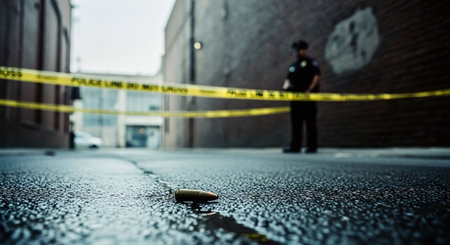 Crime scene with bullet in the middle of a crime scene (blurred background)