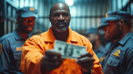 Man in handcuffs, handcuffed arrested man behind prison bars Ai generated