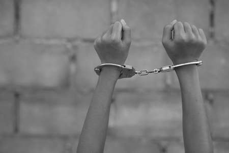 Police arrested the criminal, money laundering handcuffs,High Dynamic Range tone