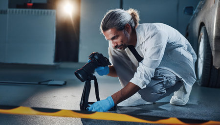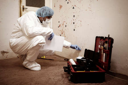 Criminological expert collecting evidence at the crime scene.