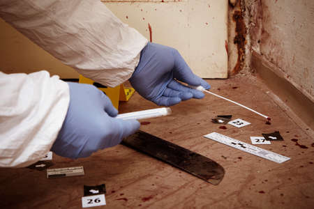 Crime scene investigation - collecting of blood samples for laboratory