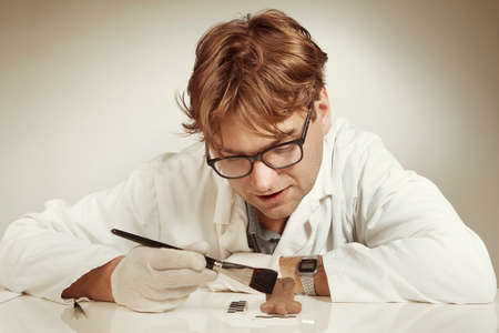 Male expert criminologist working in the lab for evidence