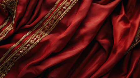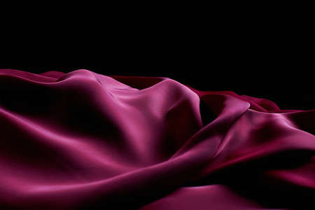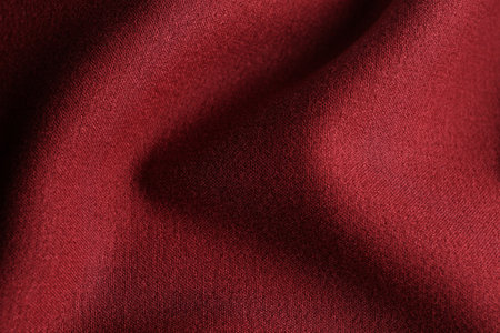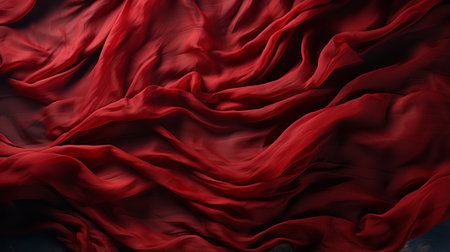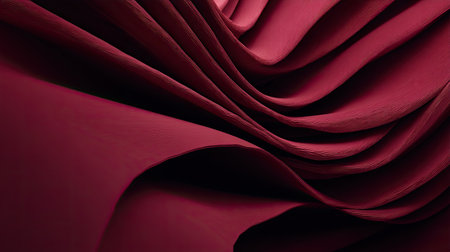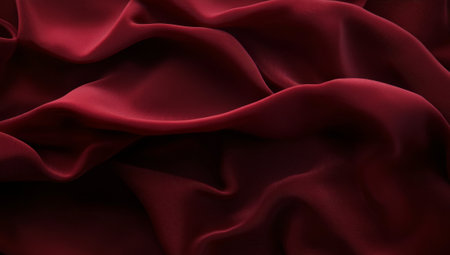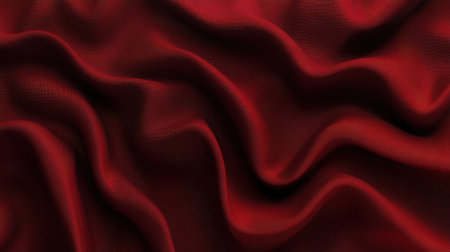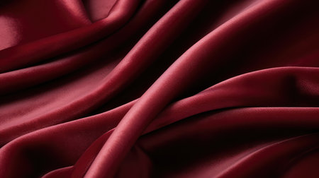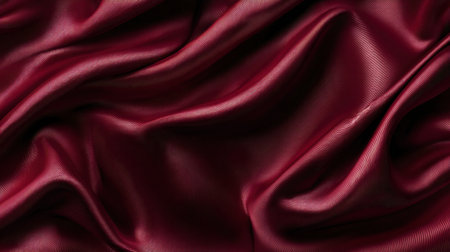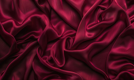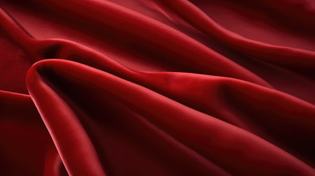 Dark red silk fabric showcases beautiful waves and folds, providing an elegant backdrop perfect for luxurious settings and romantic themes.