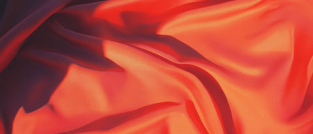 Texture. Background. Pattern. Red silk folded fabric background, banner or cover design. luxurious textile decoration backdrop for poster, Scarlet drapery material with soft satin waves, poster,