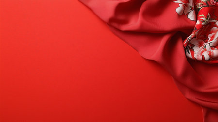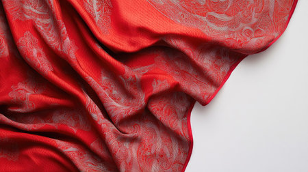 Elegant crimson silk scarf exudes luxury and sophistication, perfect for adding a vibrant touch to your style. Generated A.I.
