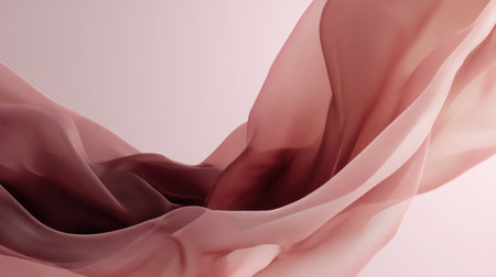 Abstract image of soft flowing fabric in gentle shades of pink and mauve, showcasing a delicate texture and graceful movement against a minimalist backdrop.