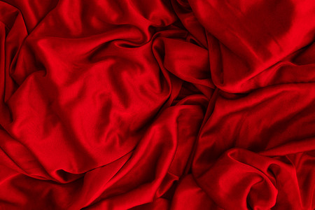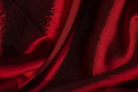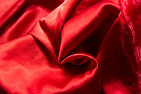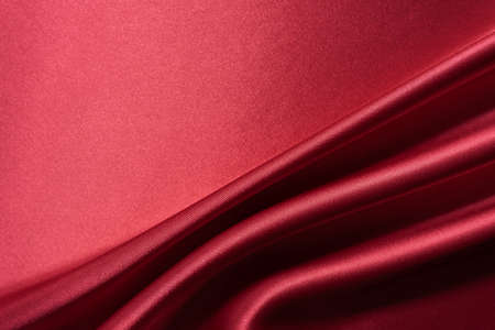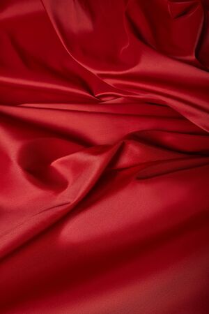 Red silk or satin luxury fabric texture can use as abstract background. Top view.