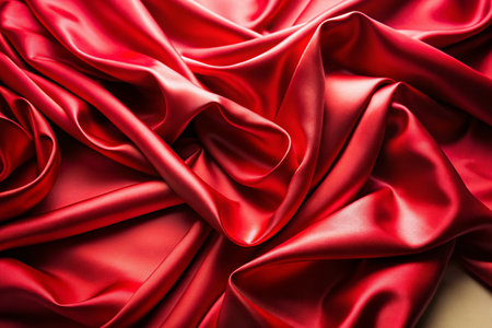 Luxurious red satin fabric with smooth waves, perfect for backgrounds with a sense of elegance
