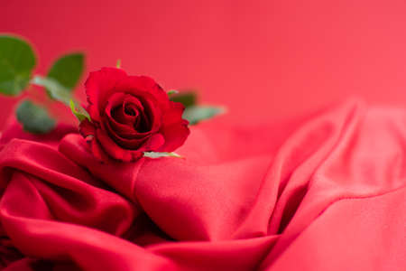 Beautiful red silk background. Draped background of fabric, texture. Valentine's day concept