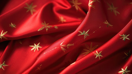 Elegant red fabric with floral embroidery showcasing vibrant color and texture for creative projects or fashion design