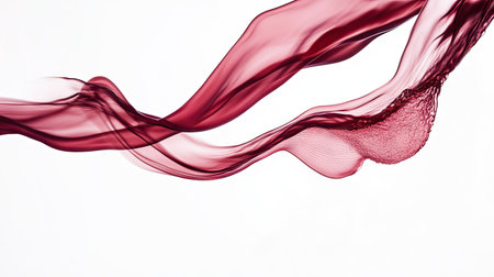 Stream of red wine pouring into a transparent glass, isolated with white background, capturing the clean and elegant flow