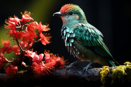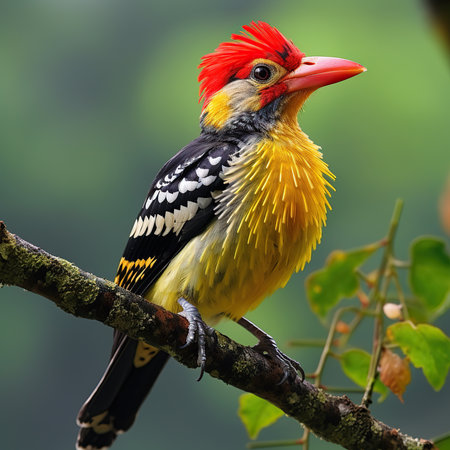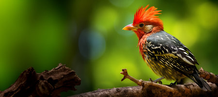Generative AI : Colorful bird Scarletfaced Liocichla on branch