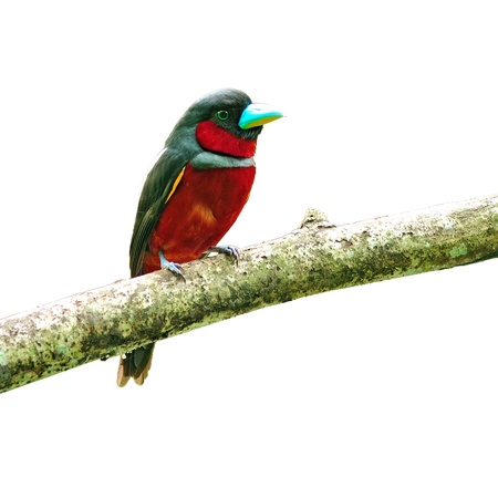 Colorful of black and red bird ( Black-and-Red broadbill (Cymbirhynchus macrorhynchos)) standing on a branch