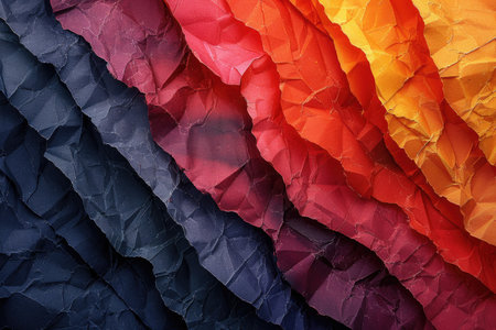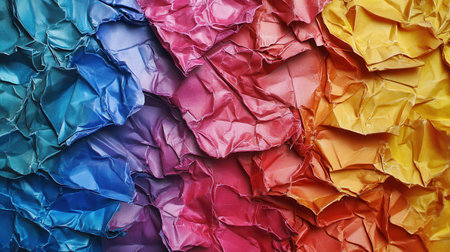 This image features a vibrant arrangement of crumpled paper in varied colors and shades, creating a striking abstract background ideal for artistic projects.
