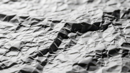 A detailed black and white image showcasing the intricate texture of crumpled paper.