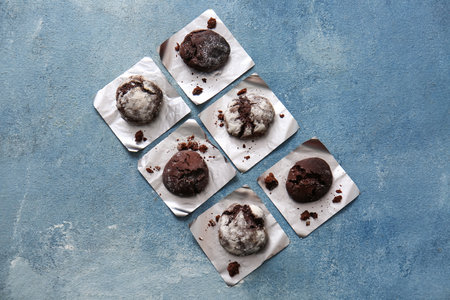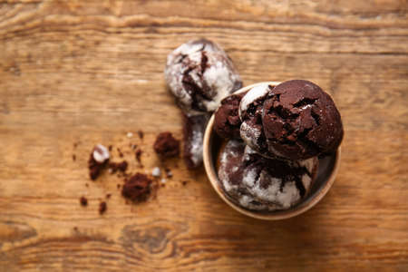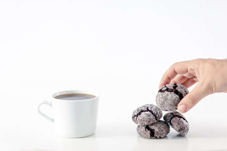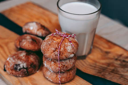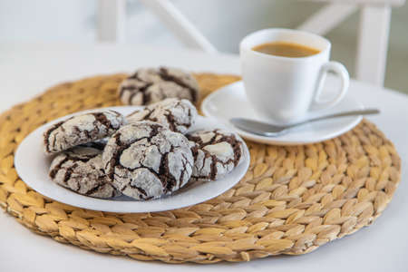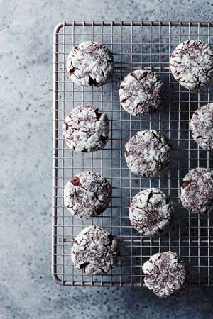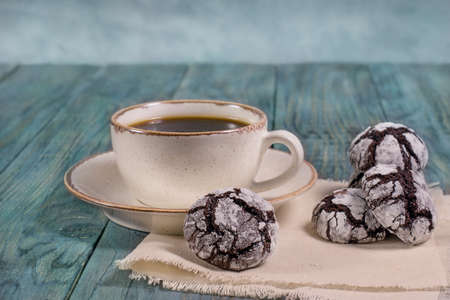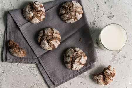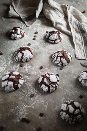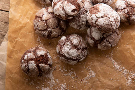 chocolate cookies. homemade chocolate crinkles cookies powdered sugar with milk.
