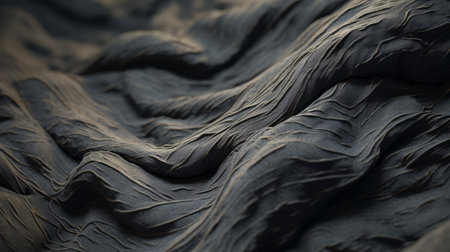 a close-up shot of a surface resembling otherworldly landscapes, featuring flowing fabrics. this captivating image was created using zbrush and rendered in cinema4d. the dark indigo and dark bronze colors add depth and intrigue to the creased, crinkled, and wrinkled textures. the tokina at-x 11-16mm f/2.8 pro dx ii lens was used to capture this stunning shot. ai generated
