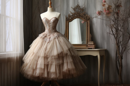 elegant ballet tutu on a vintage dress form, created with generative ai