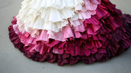This close-up image captures an elegant layered dress featuring ruffles in a stunning gradient from white to deep red. Perfect for fashion enthusiasts.