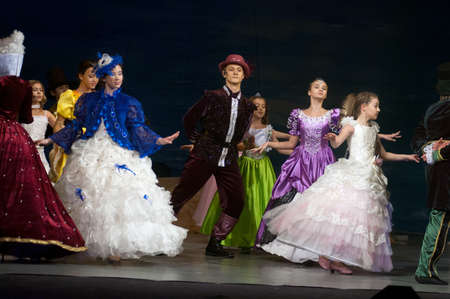 DNEPROPETROVSK, UKRAINE – DECEMBER 17: Unidentified children, , ages 9-14 years old, perform musical spectacle Red Sails on December 17, 2011 in Dnepropetrovsk, Ukraine