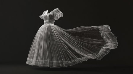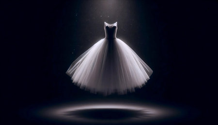 White tutu floating in black void, Ai generated image