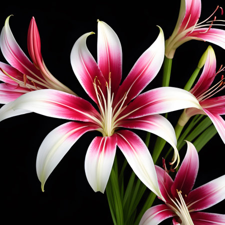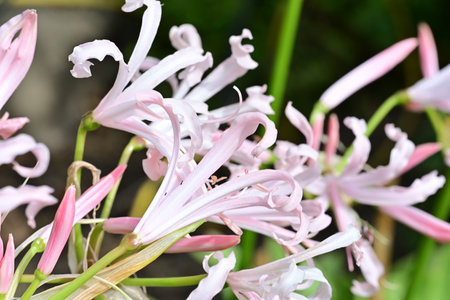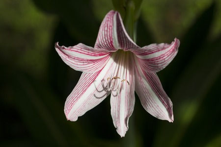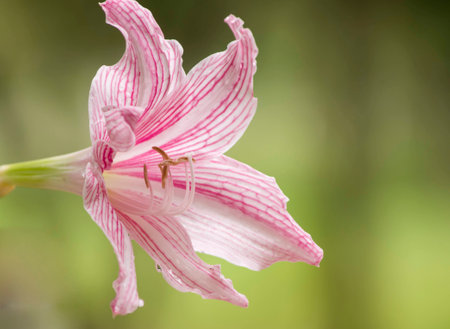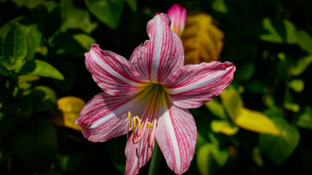 Crinum latifolium flower in bloom, has white petals with a combination of pink stripes