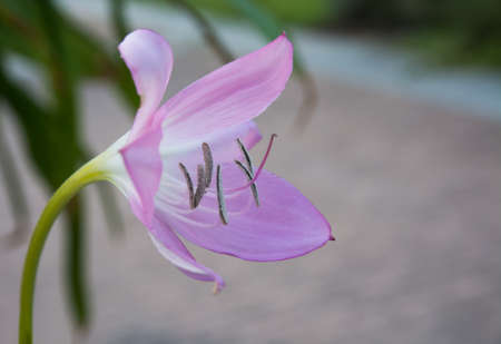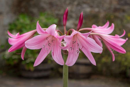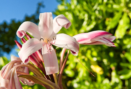 Beautiful Jersey lily (Amaryllis belladonna) or naked-lady-lily white and pink flowers