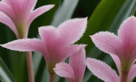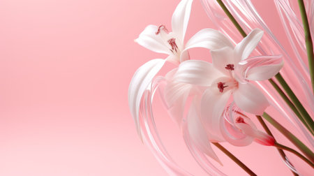 white flowers on a pink background in 8k resolution, featuring flowing surrealism and layered imagery with electric color schemes. this uhd image, created with zbrush, exudes subtle irony and captivating beauty. ai generated