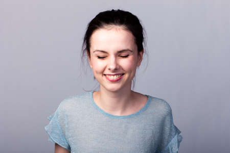 beautiful girl in a T-shirt, light background, emotional portrait, clean skin, cosmetology
