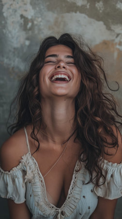A portrait of a young, vibrant woman joyfully smiling at the camera, ai-generated