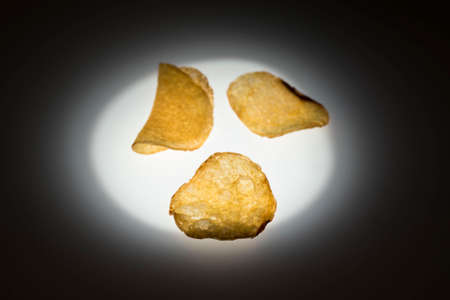 Delicious potato chips arranged neatly