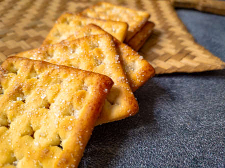 Close Up Sweet Crunchy Crackers isolated on abstract background.