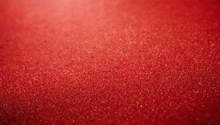 Close-up view of a shimmering red glitter surface, enhanced by soft ambient lighting, creating a warm and inviting atmosphere perfect for holiday festivities
