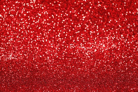 A vibrant red background filled with fine glitter particles and soft, out-of-focus bokeh lights. The foreground features a dense layer of sparkling red glitter, transitioning to a smoother, blurred red expanse with numerous circular light effects in the upper portion.