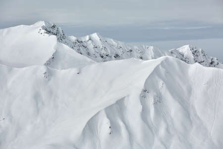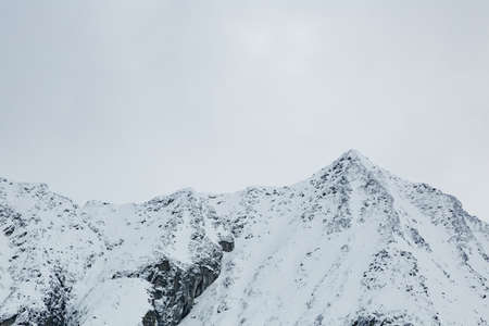 Snowy mountains on a foggy day. Caucasus, Russia.