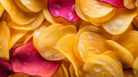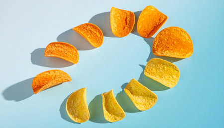 AI Generated. Crispy Potato Chips Arranged on Yellow Surface
