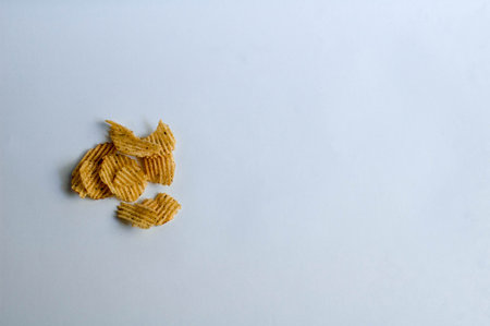 Fluted potato chips close-up on a colored background. Kopi space potato chips