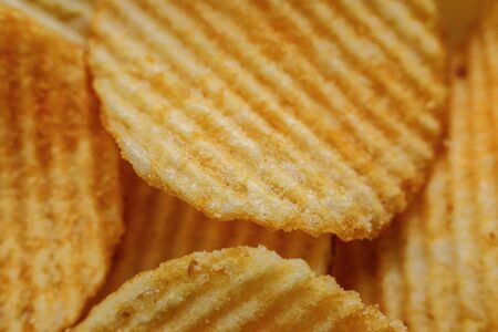 Corrugated Potato Chips. Close-up macro view