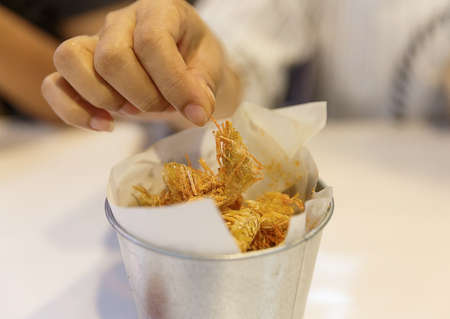 shrimp fritters or prawn bajji or jheenga pakoda or kolambi or zinga pakora, Indian snack food
