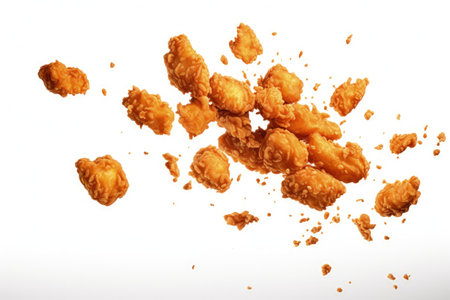 Falling popcorn chicken isolated on white