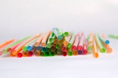 multicolored tubes for cocktails and juices on a white background in a row use for background, with copy space for text